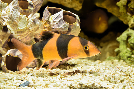 - –Soa um pouco como “sanguessugas”, mas não tão nojento. Esses peixes são longos e redondos, com lindos padrões de listras e pequenos bigodes ou espinhos que os ajudam a se segurar nas rochas em correntes rápidas. Botias são alimentadores de fundo que também ajudam a manter seu tanque limpo. Eles trabalham em ambientes comunitários. Um cuidado: eles são sensíveis aos níveis de nitrato na água, portanto, as trocas freqüentes de água são necessárias, mesmo durante o ciclismo do aquário.