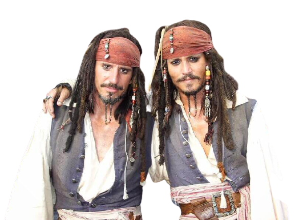 Johnny Depp e seu dublê Tony Angelotti em “Piratas do Caribe”